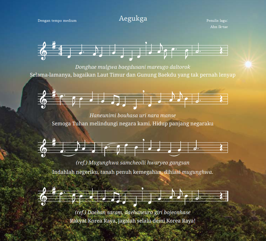 Lagu Kebangsaan - Lagu Hati yang Menyatu, Aegukga